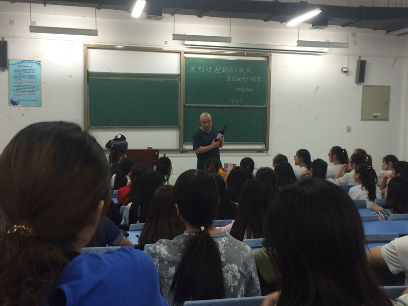 结合教学的实际,胡教授对葡萄酒产业规划为三部分:葡萄酒的酿造(产区,品种和工艺)、葡萄酒的存放(酒柜)和葡萄酒的品尝(观色、闻香和尝味)。其中每一个环节都包含有大量的信息量,需要大家去学习。胡教授将瓶塞作为例子,瓶塞的组成,类别,大小,用于不同的酒种。由于同学们刚接触或者尚未接触专业知识,并且关于进口酒这部分接触较少,因此大家对胡教授带来的知识信息,表达了热切的求知欲,现场反应热烈。