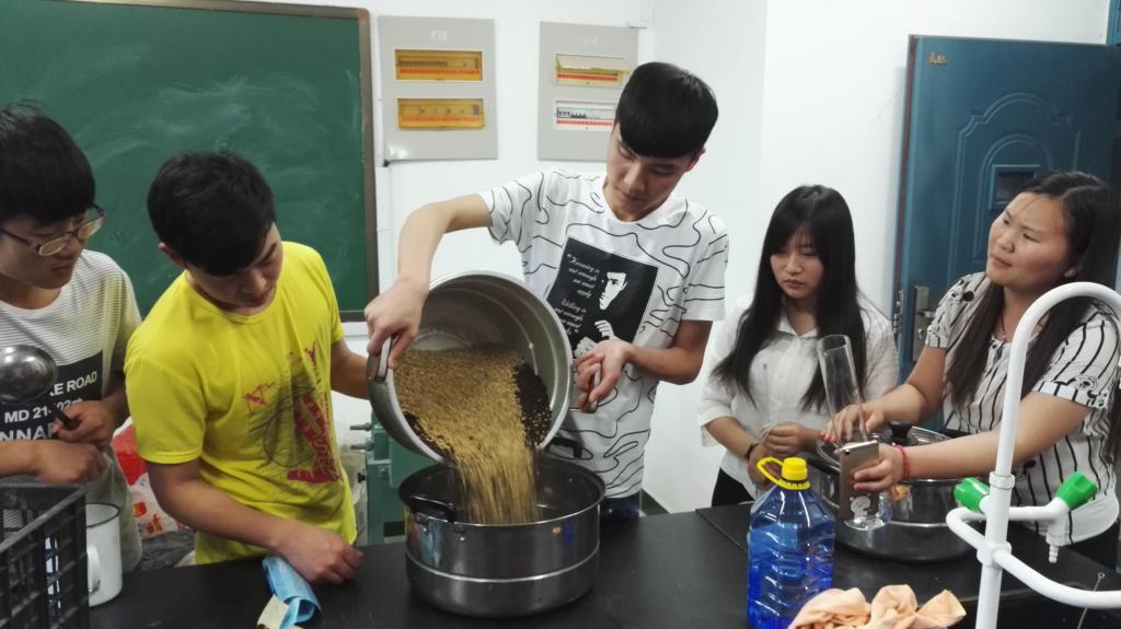 为丰富大学生课余生活,落实应用型本科院校加强学生专业技能水平培养工作,使学生亲身体验啤酒酿造的过程,切实感受生物酿造的魅力,6月6日中午,生物工程学院在生工组团楼C520酿酒实验室开展“啤酒酿造”趣味活动。