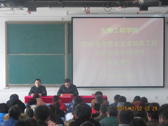 为了加强学生干部队伍建设,提高学生干部的工作能力和综合素质,生物工程学院于2015年11月13日—2014年11月30日,成功举办了“青年马克思主义者培养工程”大学生骨干培训班,共217名学生干部参加了此次培训。