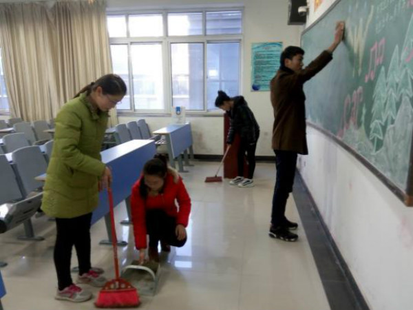 号召我院青年志愿者在校园内广泛开展植绿护绿、清扫垃圾、美化环境等活动,收到良好的效果。每周星期四下午团课后,青年志愿者班级服务队都将轮流到校园里进行义务劳动。协助老师打扫实验室、宿舍、教室、操场等场所。