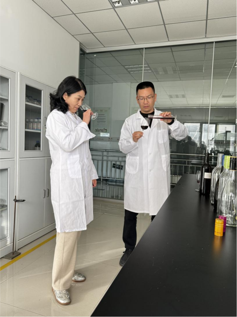 11月28日-12月2日,我院果蔬与乳品深加工专家、天明民权葡萄酒有限公司科技副总陈黄曌博士赴企业开展新产品研发的品评与勾调技术指导。公司技术总监赵雅丽全程参与,双方围绕新产品风味优化展开系统性技术攻关。