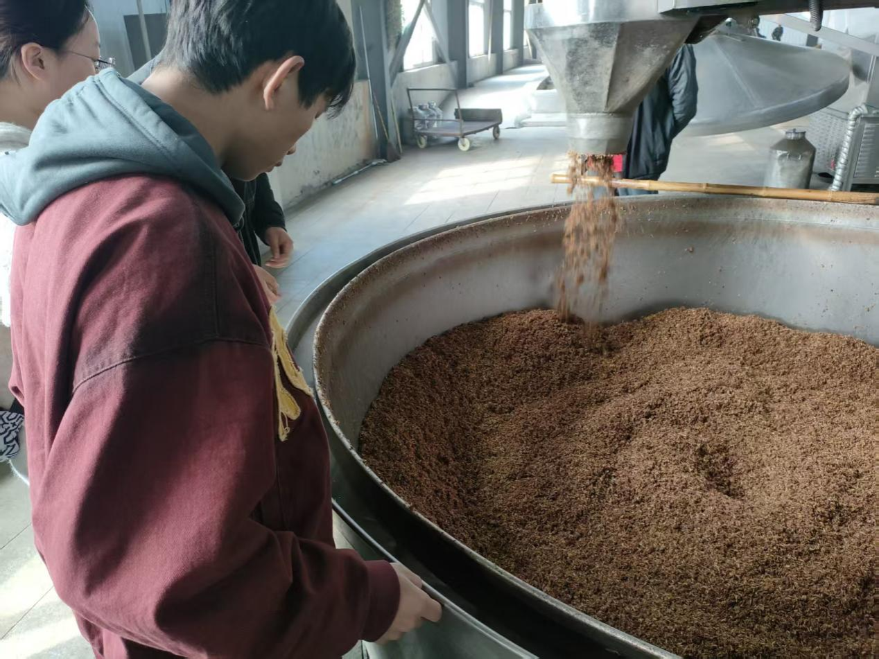 我院师生在寿酒集团现代化生产基地开展参观活动,杨向科老师充分发挥专业优势,指导学生进行样品采集操作。学生们在杨老师的指导下,实践了白酒生产过程中的关键环节采样技术,包括大曲、窖泥、酒醅等样本的规范采集方法。杨老师强调:“现场实践是连接理论知识与产业应用的桥梁,通过亲手操作,学生能更直观地理解白酒生产的科学原理。”随后,杨向科老师与寿酒集团总工程师牛广杰进行了技术交流,双方就白酒生产工艺优化、品质提升等议题交换了意见,牛广杰总工高度评价了学院在人才培养方面的贡献,并表示:“校企合作是推动产业创新的关键,杨老师的带队指导为技术研发提供了宝贵支持。”